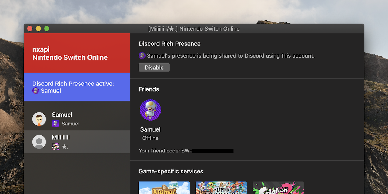Nintendo Switch app APIs. Show your Nintendo Switch presence in Discord, go friend notifications on desktop, and download and access SplatNet ii, NookLink and Parental Controls information. Mirror of https://gitlab.fancy.org.uk/samuel/nxapi.git.